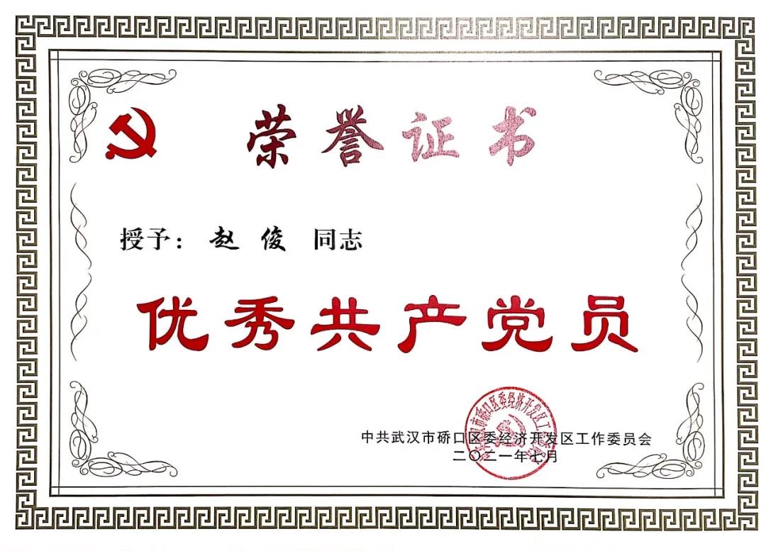 下午15時,大會正式開始,全體起立,共唱國歌。紀工委書記章國偉宣讀《硚口經濟開發區黨工委關于表彰優秀共產黨員、優秀黨務工作者和先進基層黨組織的決定》。20余名共產黨員、10余名黨務工作者、近10個基層黨組織,分別被授予硚口區委經濟開發區“優秀共產黨員”、“優秀黨務工作者”、“先進基層黨組織”榮譽稱號。開發區黨工委班子成員及其他領導為獲獎者代表頒發榮譽證書和獎牌,會場響起熱烈掌聲。我司支部張濤同志、趙俊同志分別榮獲“優秀共產黨員”稱號;甘英杰同志榮獲“優秀黨務工作者”稱號。