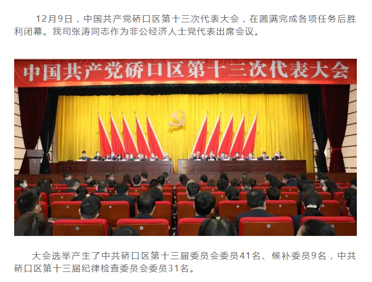 中國共產(chǎn)黨硚口區(qū)第十三次代表大會勝利閉幕